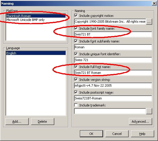 Roman. Připomínám, že v souladu s doplněním z 19.8. je nutné vyplnit Full Font Name ve všech popiscích, ne jen v „Microsoft Unicode BMP only“.Pozn.: Jak se říká, důvěřuj ale prověřuj. Já ve skutečnosti nevím, jestli to má být u všech třech typů písma – protože patkové písmo fungovalo i bez vyplňování full-font-name, tak jsem to ani nezkoušel a nechal jsem u něj full-font-name tak, jak byl. Zato jsem si ale důkladně a ve všech kombinacích ověřil, že u bezpatkového i neproporciálního písma se full-font-name opravit musí, jinak to nebude fungovat. Ještě ilustrační obrázky, co vlastně po vás chci: